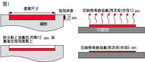 移印油墨與絲印油墨相似,但絲印油墨不會快速揮發,否則油墨就會在網框里干透。反之,移印油墨則需要有高度揮發的功能,令油墨能輕易黏上及離開膠頭。另外,移印油墨比起絲印的會較薄。(圖1)