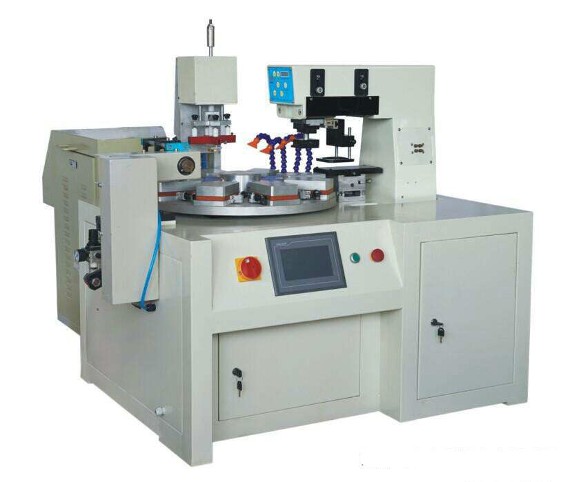 1、 印刷速度比轉(zhuǎn)盤機(jī)慢,但印刷工件可以大一些,六個(gè)顏色一次套色印刷完成。