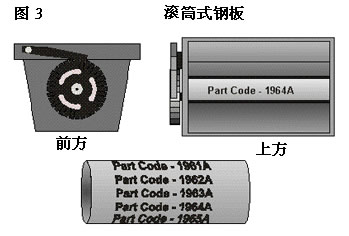 另一種可印刷多項資料的鋼板是滾筒形的。(圖3)