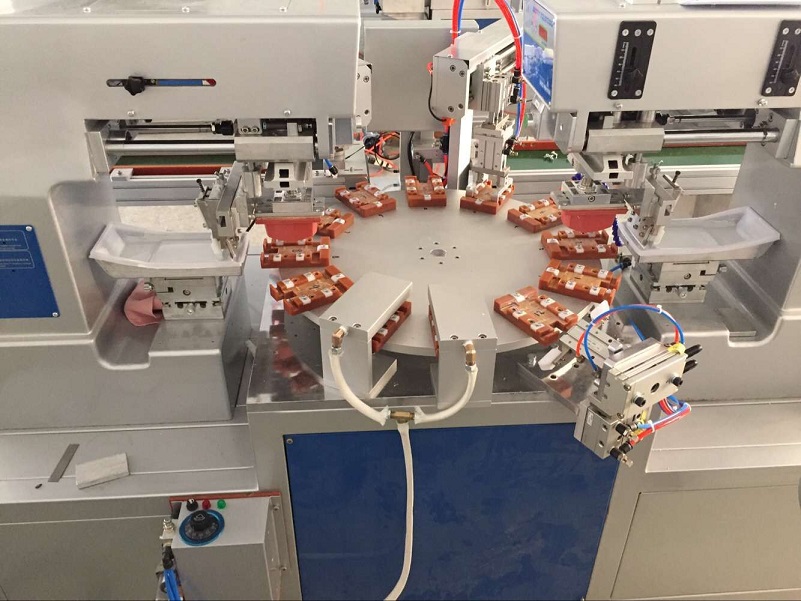 活動油盆和油盅的印頭只作上下移動,不存在機械撞擊,印頭的震動也減少了,因此,大部分高速度移印機都使用活動油盆和油盅。